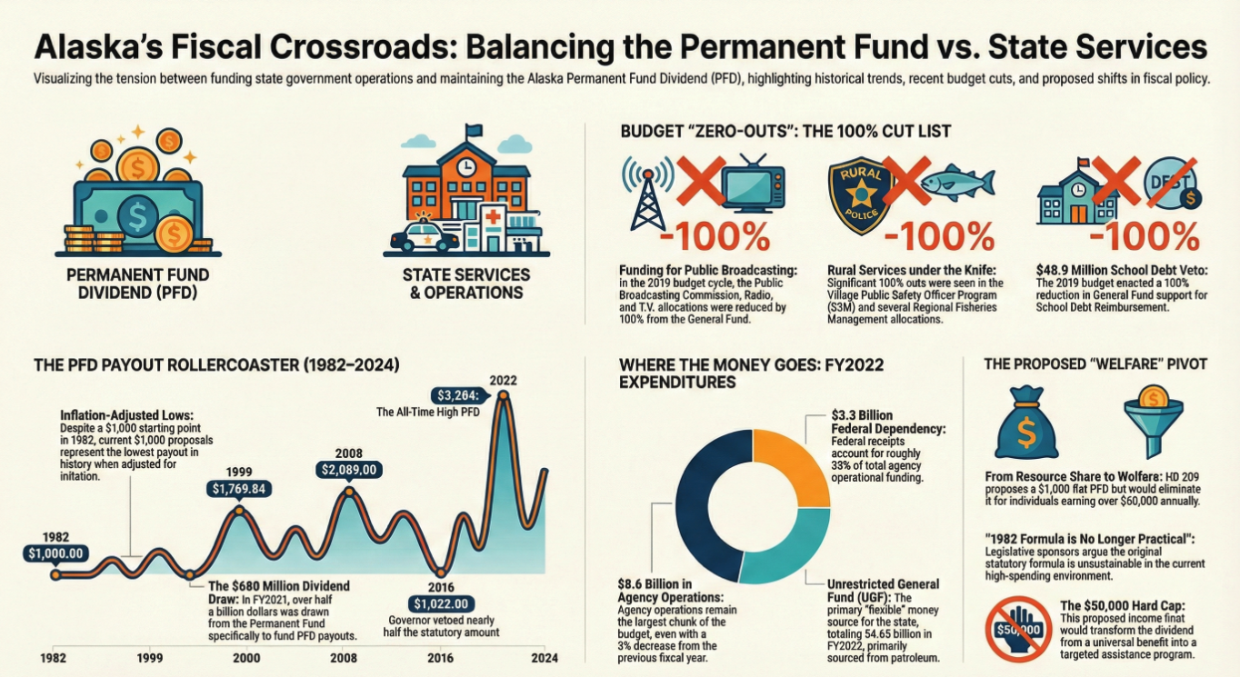 They Didn’t Cut It. They Took It. The PFD Doomsday Clock 2.0 is LIVE. Alaska’s politicians have siphoned billions from your family’s Permanent Fund Dividend since 2016. Now you can see exactly how much they took from you—adjusted for inflation, backed by hard data. Built with: •Inflation figures from the U.S. Bureau of Labor Statistics •Investment growth from Yahoo Finance API •Adjusted to 2024 real dollars